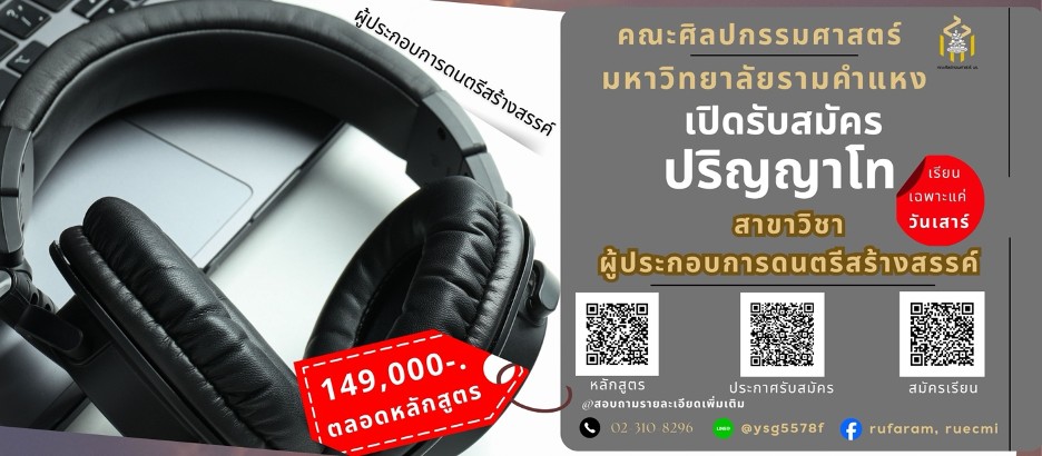 ผู้ประกอบการดนตรีสร้างสรรค์ ชื่อหลักสูตร ภาษาไทย: หลักสูตรศิลปกรรมศาสตรมหาบัณฑิต สาขาวิชาผู้ประกอบการดนตรีสร้างสรรค์ภาษาอังกฤษ: Master of Fine and Applied Arts Program in Entrepreneurship in Creative Music Industry ชื่อปริญญา ภาษาไทย: ศิลปกรรมศาสตรมหาบัณฑิต (ผู้ประกอบการดนตรีสร้างสรรค์)ภาษาอังกฤษ: Master of Fine and Applied Arts (Entrepreneurship in Creative Music Industry)อักษรย่อ ภาษาไทย: ศป.ม. (ผู้ประกอบการดนตรีสร้างสรรค์)อักษรย่อ ภาษาอังกฤษ: M.F.A. (Entrepreneurship in Creative Music Industry) จำนวนหน่วยกิตที่เรียนตลอดหลักสูตร แผน 1 แบบวิชาการ จำนวน 37 หน่วยกิตแผน 2 แบบวิชาชีพ จำนวน 37 หน่วยกิต รูปแบบหลักสูตร ระดับปริญญาโท 2 ปี อาชีพที่สามารถประกอบได้หลังสำเร็จการศึกษา นักวิชาการทางดนตรอาจารย์สอนดนตรีในสถาบันระดับอุดมศึกษาทั้งภาครัฐและเอกชนผู้บริหารหรือผู้ประกอบการทางด้านธุรกิจดนตรนักวิจารณ์ดนตรีนักร้อง นักดนตรีผู้ประพันธ์ หรือนักเรียบเรียงดนตรีผู้ผลิตและจำหน่ายผลงานดนตรี ปรัชญาของหลักสูตร ส่งเสริมองค์ความรู้ทางดนตรีสู่การพัฒนาอย่างมีคุณธรรม ความสำคัญของหลักสูตร หลักสูตรศิลปกรรมศาสตรมหาบัณฑิต สาขาวิชาผู้ประกอบการดนตรีสร้างสรรค์ เป็นหลักสูตรที่มุ่งเน้นพัฒนาทรัพยากรบุคคลในอุตสาหกรรมดนตรีให้มีความเป็นเลิศในด้านการศึกษา ค้นคว้า บูรณาการองค์ความรู้ในศาสตร์ของดนตรีร่วมกับศาสตร์อื่นๆ อันนำไปสู่แนวทางที่เป็นประโยชน์ต่อการพัฒนาอุตสาหกรรมดนตรีที่มีการปรับตัวและเปลี่ยนแปลงอย่างต่อเนื่องในยุคปัจจุบัน วัตถุประสงค์ของหลักสูตร เพื่อผลิตมหาบัณฑิตให้มีความสามารถบูรณาการความรู้ ความสามารถทางดนตรีกับความรู้ในศาสตร์อื่นๆ เพื่อพัฒนาอุตสาหกรรมดนตรีและสังคมผลิตมหาบัณฑิตให้มีความสามารถในการบริหารจัดการผลผลิตและกิจกรรมต่างๆของดนตรีให้เป็นประโยชน์ต่อสังคมผลิตมหาบัณฑิตให้เป็นบุคลากรทางวิชาการดนตรีที่มีจรรยาบรรณและส่งเสริมความสำคัญของอุตสาหกรรมดนตรีที่มีต่อสังคม ผลลัพธ์การเรียนรู้ที่คาดหวังของหลักสูตร (PLOs) PLO1 ประยุกต์องค์ความรู้ในศาสตร์ดนตรีร่วมกับศาสตร์ที่อื่นๆ เช่น การบริหารจัดการ เทคโนโลยี ทักษะผู้ประกอบการ การเงิน เป็นต้น เพื่อการค้นพบองค์ความรู้ใหม่PLO2 วิเคราะห์ข้อมูลจากการศึกษา สถานการณ์ต่างๆในอุตสาหกรรมดนตรีทั้งในอดีตและปัจจุบันPLO3 วิพากษ์ผลงานเชิงวิชาการและงานวิจัยดนตรีได้อย่างมีหลักการและเหตุผลPLO4 ดำเนินการจัดกิจกรรมด้านดนตรีอย่างเป็นระบบ พร้อมทั้งควบคุมการดำเนินงานให้มีคุณภาพPLO5 นำเสนอผลงานทางดนตรีโดยการพูด อ่าน และ เขียนทั้งภาษาไทยและภาษาอังกฤษในระดับชาติ หรือระดับนานาชาติPLO6 มีจรรยาบรรณ